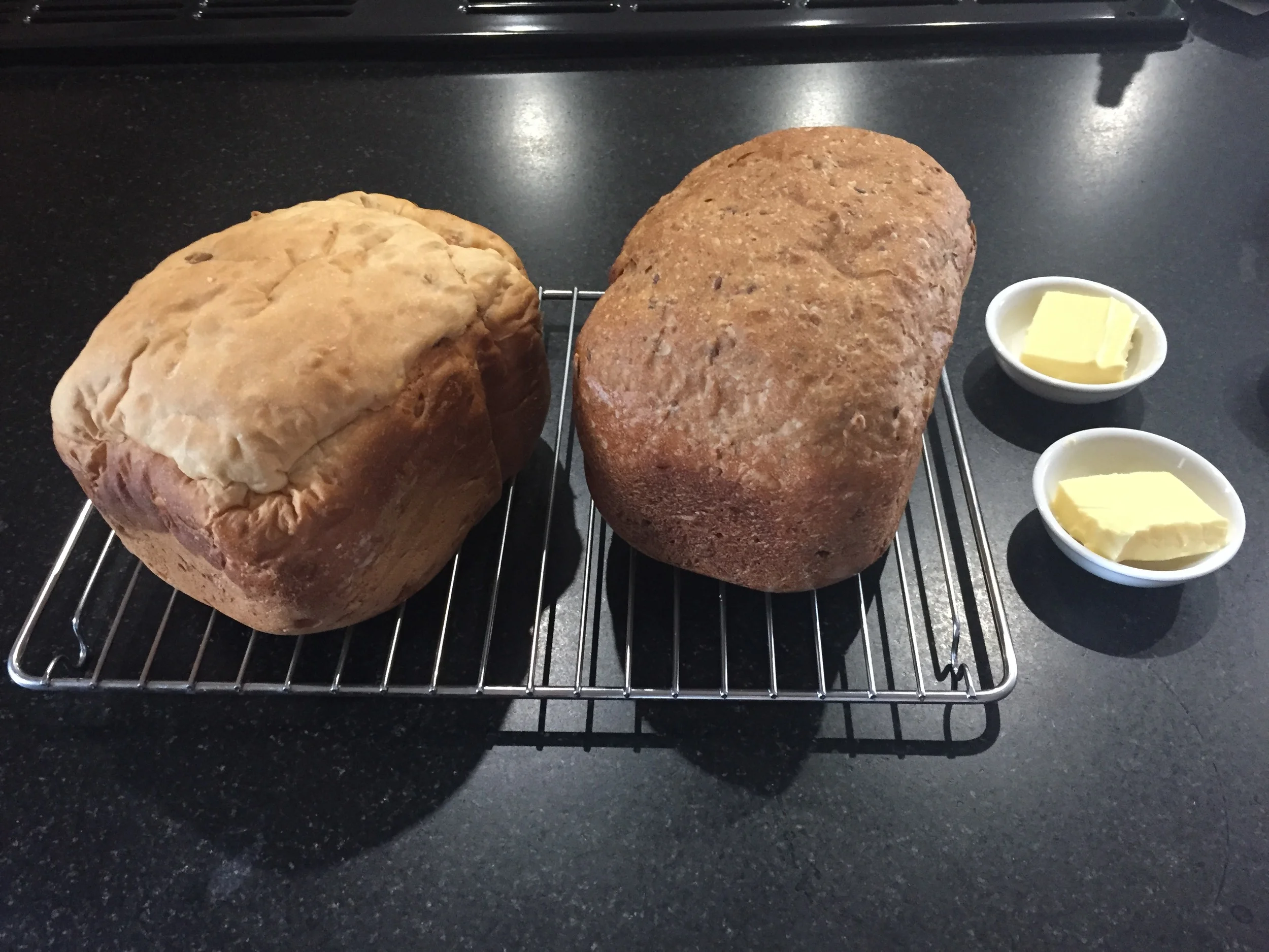 12 for breakfast this morning so definitely a Two Loaf Sunday. Let me introduce you - To the left we have Honey and sunflower (particularly good served simply with lashings of butter) and to the right Wholegrain multi seed (my favourite with Smoked Salmon and Scrambled eggs)